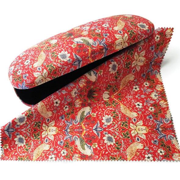 Smukke William Morris brilleetuier, der er utroligt fint fremstillet med en blød - nærmest stofagtig - og behagelig overflade. Her ligger brillerne godt beskyttet og samtidig har man en lille matchende pudseklud ved hånden...