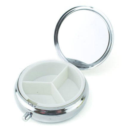 Pilleæsken måler ca. 4,5 cm i diameter.