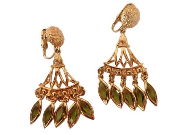 Meget flotte hængeøreringe med clips i forgyldt metal. De grønne glassten er gennemsigtige og har en meget smuk grøn farve.