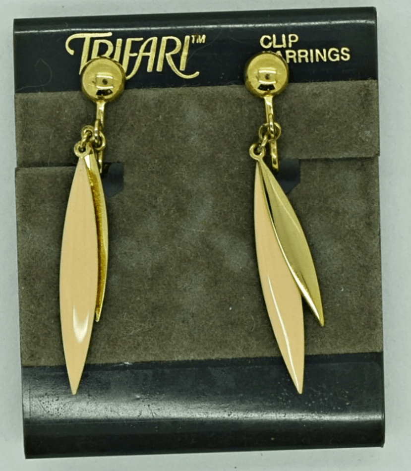 Søde vintage øreringe fra TRIFARI, og selv om de er fra 1970'erne, er de nye og ubrugte - de sidder stadig på det mærke, de havde i butikken. Øreringene er ca. 5 cm lange.