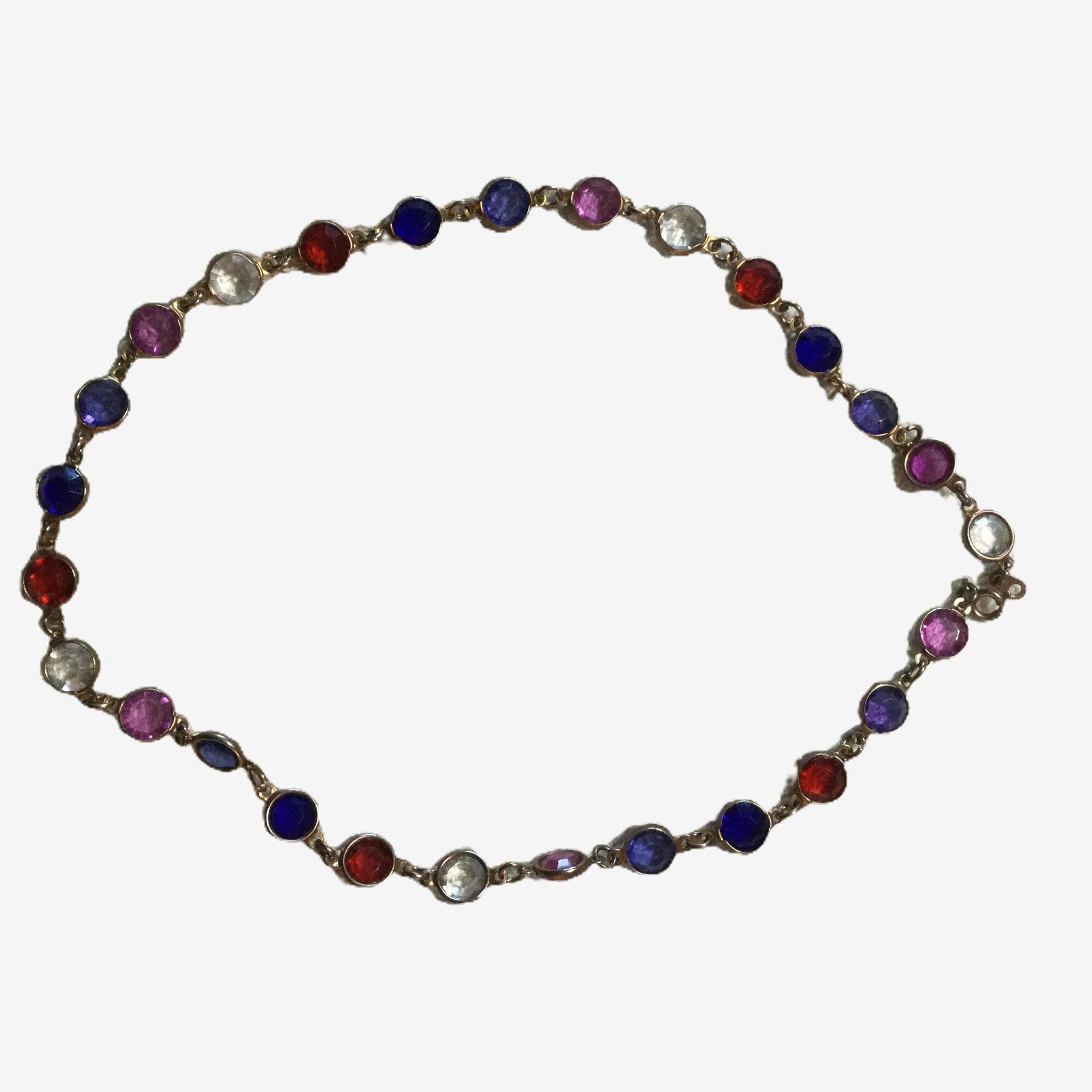 Jeg ved faktisk ikke, hvad man kalder sådan en kæde med forskelligt farvet glas - men på engelsk kaldes den Tutti Frutti. Og da det - i hvert fald hos mig - leder tanken hen på farveglade bolsjer eller andet blandet slik, så bruger jeg den betegnelse.